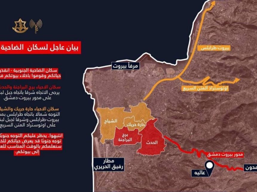 Israel’s racist colonial regime has demanded the immediate evacuation of the southern suburb of Lebanon’s capital Beirut. Fascist Israeli government minister Bezalel Smotrich announced that the southern suburbs will be “like Khan Younis”: